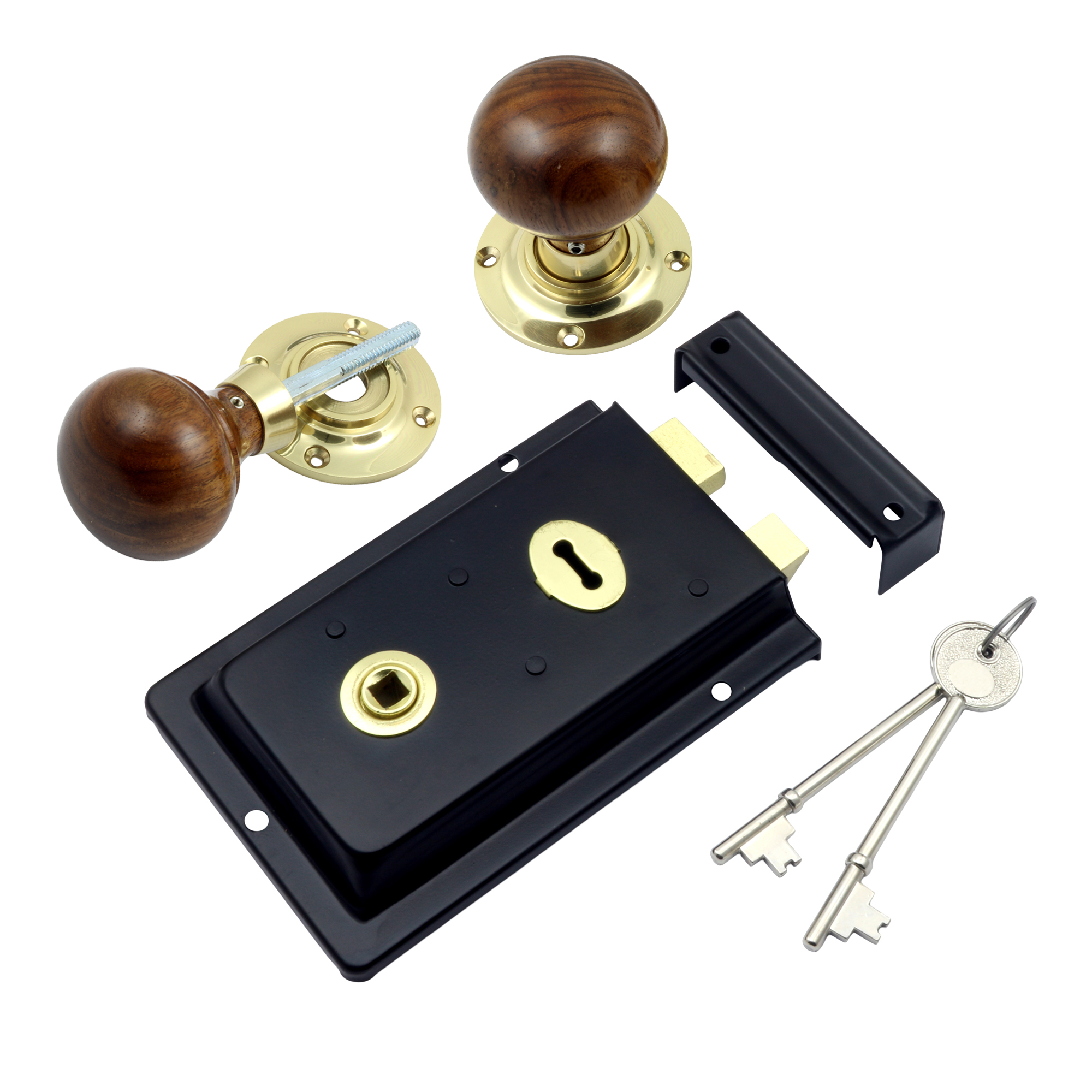 Matt Black Reversible Rim lock complete with Rosewood Mushroom Rim knobs (BH1021BLB)