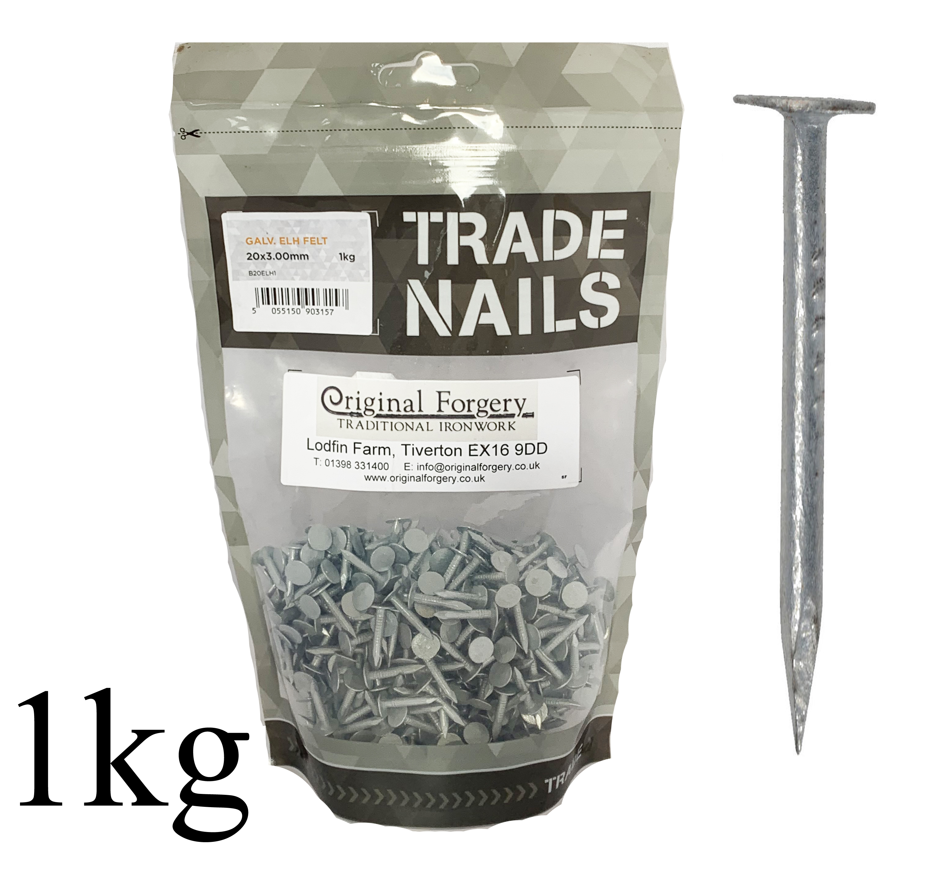 1kg box of 50mm x 3mm Galvanised, Large head, Felt or Roofing nails